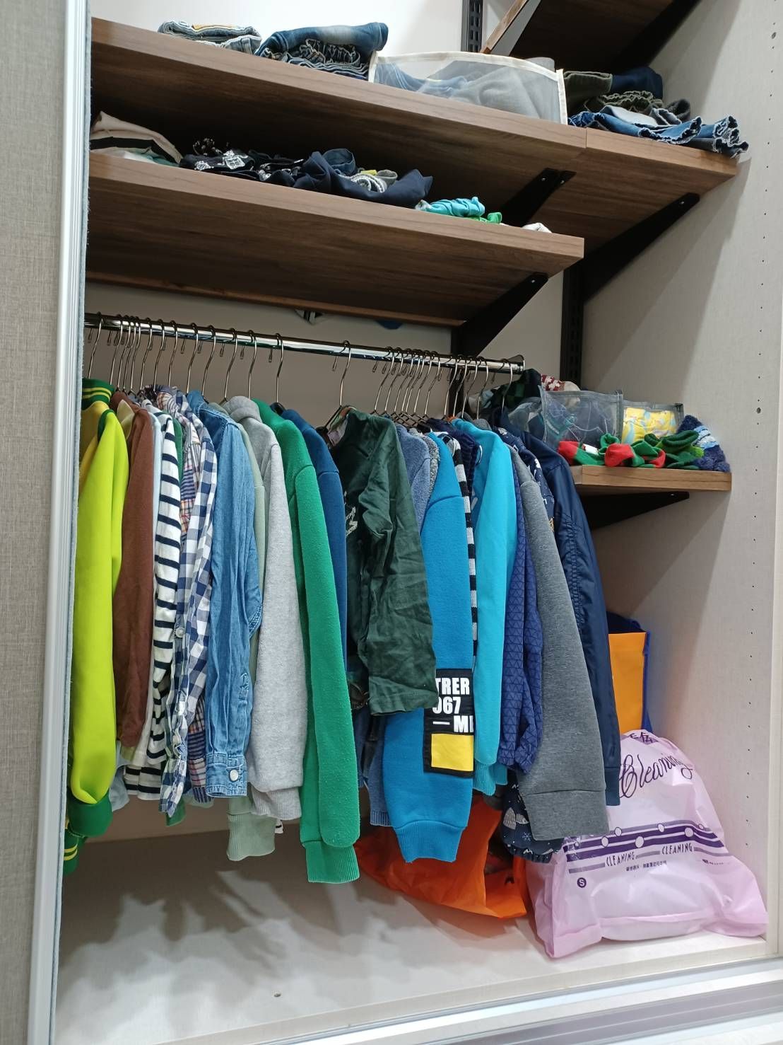 話說小編前陣子搬新家,既然要住進新家當然會希望將新家美美的裝潢好再入住囉~但只要一想到貴森森的裝潢費用就讓人猶豫不前,仔細看到裝潢費用明細,佔比最高的項目就是木作櫃體,尤其是衣櫃,有幾個房間就會需要幾個衣櫃,一個衣櫃的木作費用就高達6.7萬,真的讓人很難下手阿阿~~幸好小編待在貨架業,很快就想到了將貨架改裝成衣櫃,實用性不減但負擔是大大減輕啦~~~這款貨架型衣櫃小編一定要好好介紹一下,最厲害的地方就是層板及衣架圓管的高度可以隨個人不同階段的需求做調整,這可是一般衣櫃所沒有的便利性,若是家裡有小朋友,從出生到大學畢業就用這一組貨架型衣櫃從頭到尾都不用再換衣櫃了呢~~還可以隨心情幫衣櫃換裝不同的門簾,衣櫃的主體顏色和背板顏色也可以隨個人喜好做選擇,最棒的是,以前小編買的一般木頭款衣櫃,遇到台灣悶熱潮濕的天氣不除溼衣櫃就開始發霉,衣服也都會有味道,換了這款貨架型衣櫃就再也沒有悶熱潮濕的問題啦~~最重要的一點是,女生的衣櫃常常都會不小心爆炸,以前小編的衣櫃裡掛衣服的桿子還曾經因為掛太重變形...,換了鐵製的貨架型衣櫃也不用再擔心這個問題啦~可真是一舉數得呢~~^^